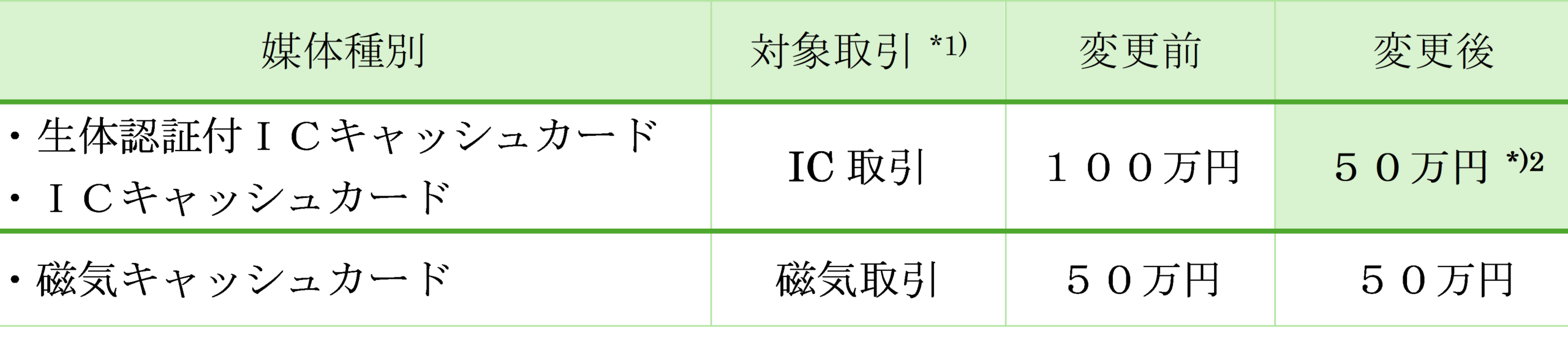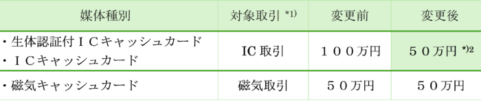 *2) 利用限度額を予め変更されている場合は,「変更対象外」となります。